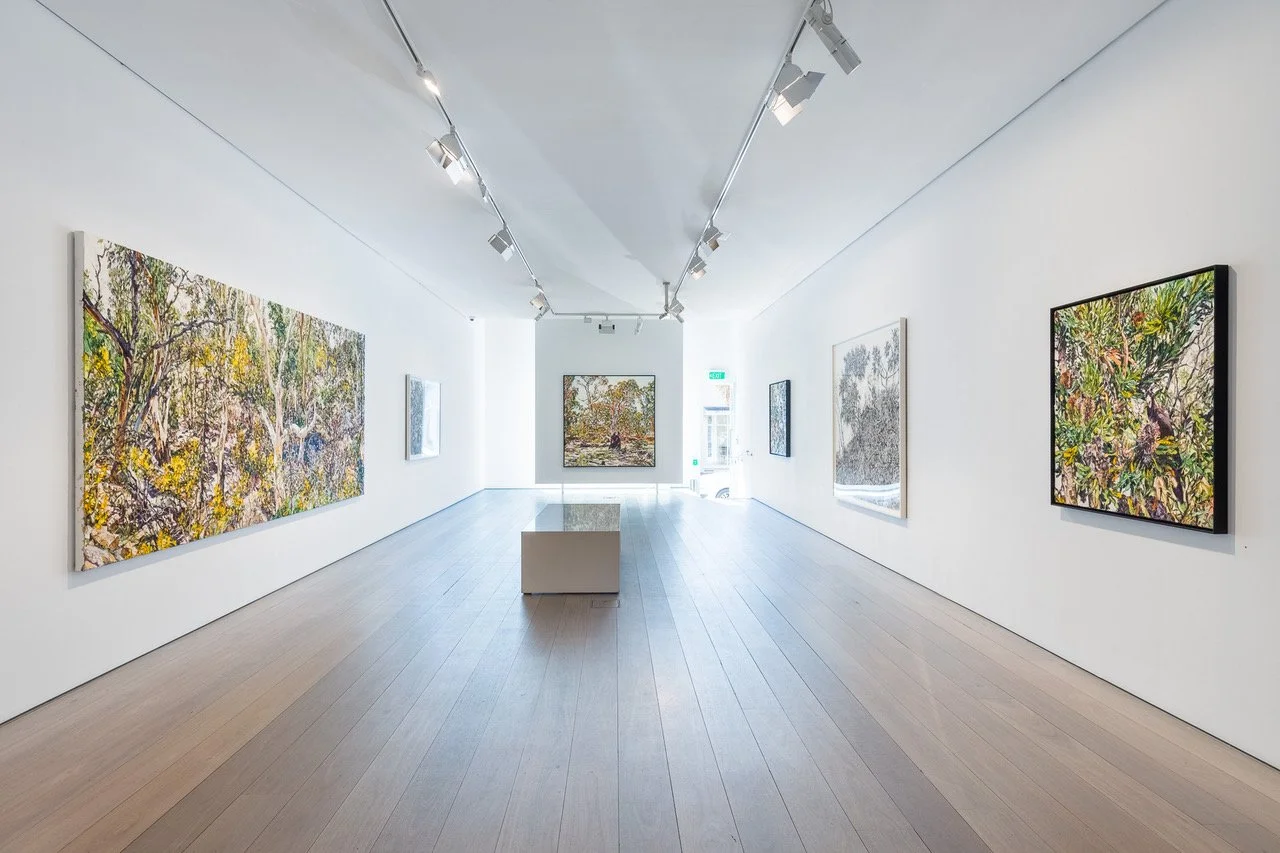 2020 Wilpena wattle and eucalypts (Sliding Rock) oil on linen 170x400cm